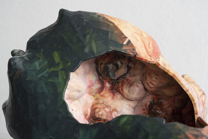 Still Life Mask Series is generated by photogrammetry using the images “observed” by Google Deep Dream (artificial neural network algorithm) as the subject. In this process, all the observed objects (whether living or non-living things, human or non-human) are regarded and analyzed as pixels (data) by the artificial neural network. In this way, human subjectivity is dissolved and materialized, thus becoming a kind of “still life.”